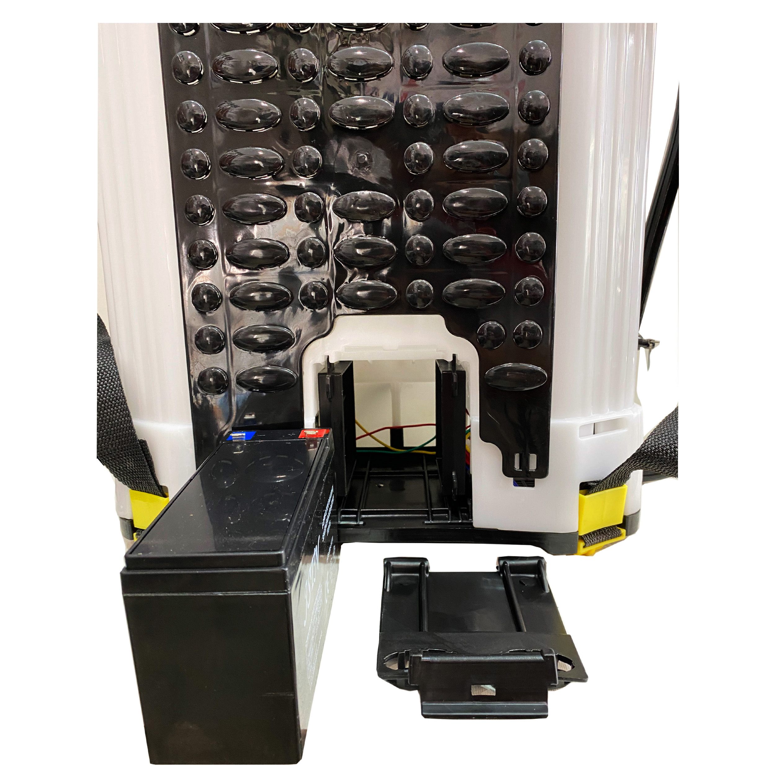 سمپاش شارژی 16 لیتری دو کاره رینهو پاور RP416H: سمپاش دستی شارژی دو کاره یکی از ادوات پر کاربرد در کشاورزی و باغبانی است که همزمان سمپاش دستی تلمبه ای و سمپاش شارژی را برای شما به ارمغان می آورد. برند رینهو پاور یک برند قدیمی سنگاپوری است که محصولاتش را تحت لیسانس کمپانی مادر در کشور چین به تولید می رساند. سمپاش رینو پاور دوکاره مدل RP 416H دو مزیت بزرگ نسبت به سایر سمپاش های شارژی دستی دوکاره دارد: مورد اول اینکه این دستگاه دارای غربیلک تنظیم دور است به این صورت که میزان قدرت موتور دستگاه را با چرخاندن غربیلک تنظیم کرد که این مهم باعث می شود در مواقعی که سمپاشی سطحی انجام میشود یا درختان از ارتفاع بالایی برخوردار نیستند، با کم کردن دور موتور دستگاه از هدر رفت بیهوده شارژ جلوگیری کرد. مورد دوم نیز که بسیار جالب توجه است این است که میتوان تنها با باز کردن یک درپوش و بدون نیاز به باز کردن حتی یک پیچ و یا جدا کردن هیچگونه سیم، باتری دستگاه را از آن خارج کرد. کاربرد این قابلیت برای زمانی است که در حین کار شارژ دستگاه تمام شود و بخواهید از حالت دستی استفاده کنید، با خارج کردن باتری مقدار قابل توجهی از وزن دستگاه کاسته می شود و دیگر نیازی به تحمل بیهوده وزن باتری نیست. این سمپاش دارای باتری 12 ولت 8 آمپر می باشد. برای استفاده از پمپ دستی می بایست شیلنگ خروجی از قسمت خروجی پمپ شارژی باز شده و به قسمت خروجی پمپ دستی که بالای دستگاه می باشد نصب شود. جنس جدید عرق گیر حبابی پلاستیکی این دستگاه مانع از عرق کردن فرد حین کارکرد می شود. سمپاش های پشتی شارژی با توجه به صدای بسیار کم و نداشتن آلودگی علاوه بر زمین های کشاورزی در گلخانه ها و فضاهای بسته نیز کاربرد فراوان دارند. از این سمپاش ها می تواند جهت محلول پاشی، پخش کود مایع، استریل کردن و ضدعفونی محیط های مختلف، پخش علف کش و … استفاده نمود. این سمپاش دارای 4 نوع نازل است.