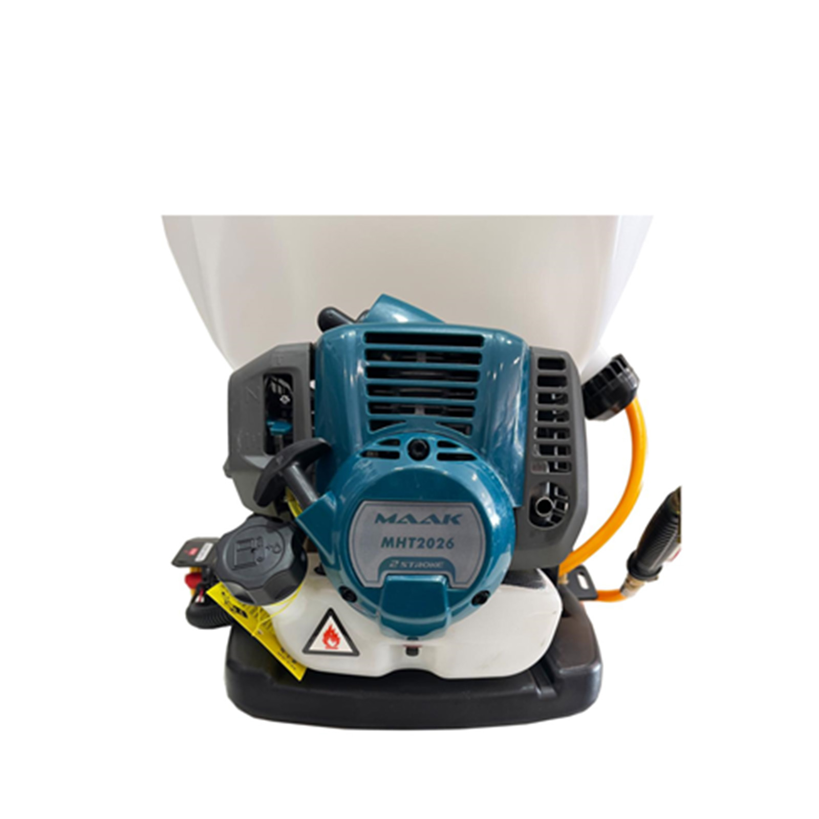 این سمپاش می تواند با تکیه بر موتور بنزینی و قدرت مطلوب پاشش یکنواخت و بالایی را تأمین نماید. در سمپاش پشتی موتوری ماک دو زمانه یک اهرم دستی در اختیار اپراتور قرار دارد. مخزن سمپاش های پشتی موتوری معمولا از جنس پلاستیک مقاوم و بادوام است. ظرفیت این مخزن درحدود 20 تا 23 لیتر می باشد. با این سمپاش در شرایط مناسب می توان در حدود 2 تا 3 هکتار را به صورت روزانه سمپاشی نمود.