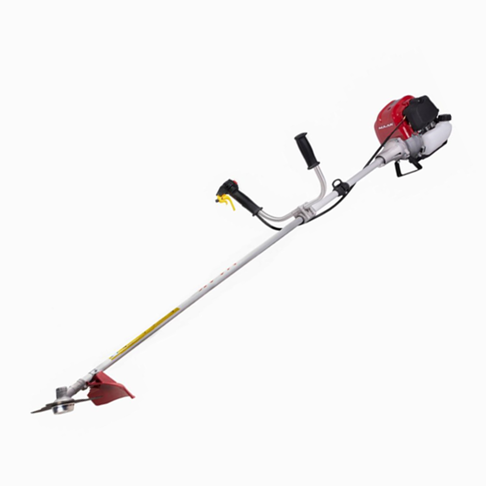 علف تراش دوشی ماک چهارزمانه GX50 طرح هوندا با موتور قدرتمند 3.5 اسب بخار و ظرفیت 52 سی سی. سیستم استارت این علف تراش به صورت هندلی می باشد. سر تیغه این علفتراش قابل تغییر به توپی نخ بوده که مناسب زمین های حاوی سنگ و همچنین حاشیه زنی می باشد که توپی نخ نیز به همراه محصول در جعبه قرار دارد. همچنین می توان با تهیه جداگانه سری شاخه زن، این دستگاه را به یک دستگاه سر شاخه زن تبدیل نمود.