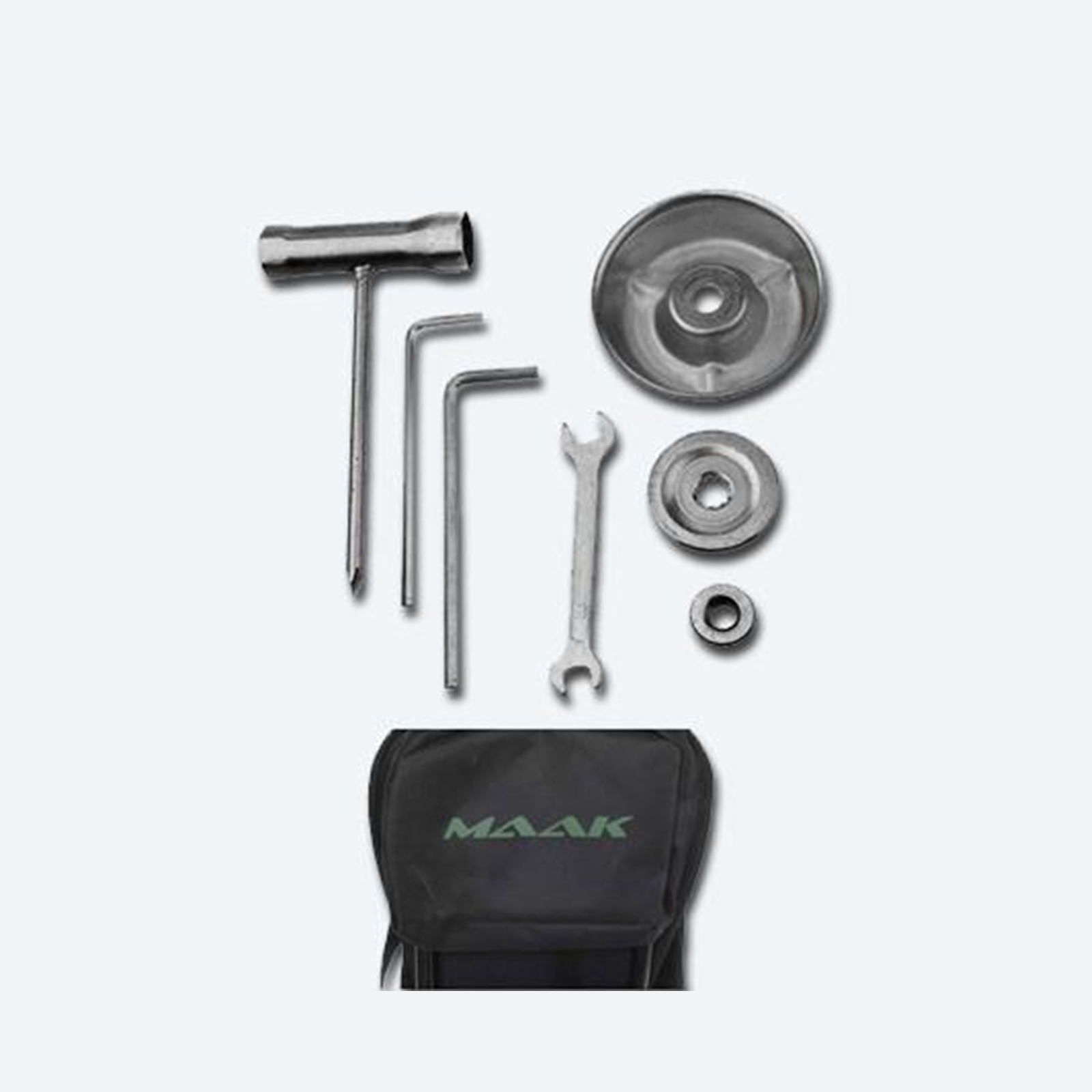 کیف ابزار، تیغه ۳ پر، تیغه ۴۰ پر الماسه، توپی نخ حاشیه زنی، قیف، بند دوش آویز