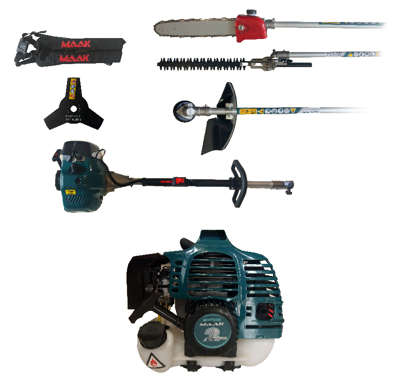 شرکت «ماک» همواره سعی بر این داشته تا با استفاده از مواد اولیه با کیفیت محصولات باکیفیتی را به بازار عرضه کند. چندکاره مدل MMT520 برند ماک با بهره گیری از موتور 52 سی سی دو زمانه 2 اسب بخاری قابلیت استفاده به عنوان شمشاد زن، شاخه زن، علف تراش را فراهم میکند تا کلیه نیازهای شما عزیزان را پوشش دهد. سوخت این دستگاه بنزینی و سیستم استارت آن به صورت هندلی می باشد.
